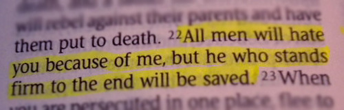 tumblr_myfe0vcx691qmkw26o1_500“Yet not a hair of your head will perish” (Luke 21:18). That is a comforting statement! Just think, we have a guarantee from Jesus that not one single hair of our head is in trouble. I once took that to mean that God is watching out for us in the “here and now,” and we should not worry because Christians are exempt from problems. That sounds nice, but something is troubling about his statement – not the statement itself, but the context of the passage that changes everything.